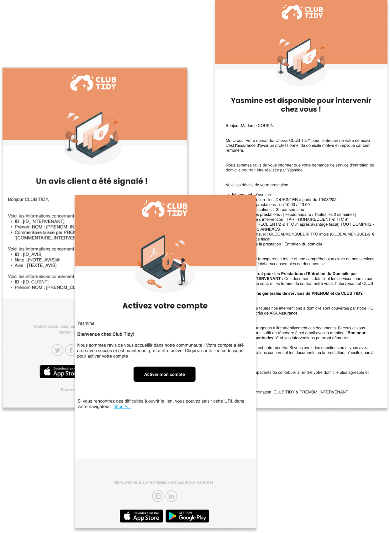 Nous avons conçu et paramétré l’ensemble des messages de services et automation avec l’intégration de variables pour la confirmations des réservations, le rappels des rendez-vous ou encore la partage d’informations importantes par e-mails, SMS, push notifications.