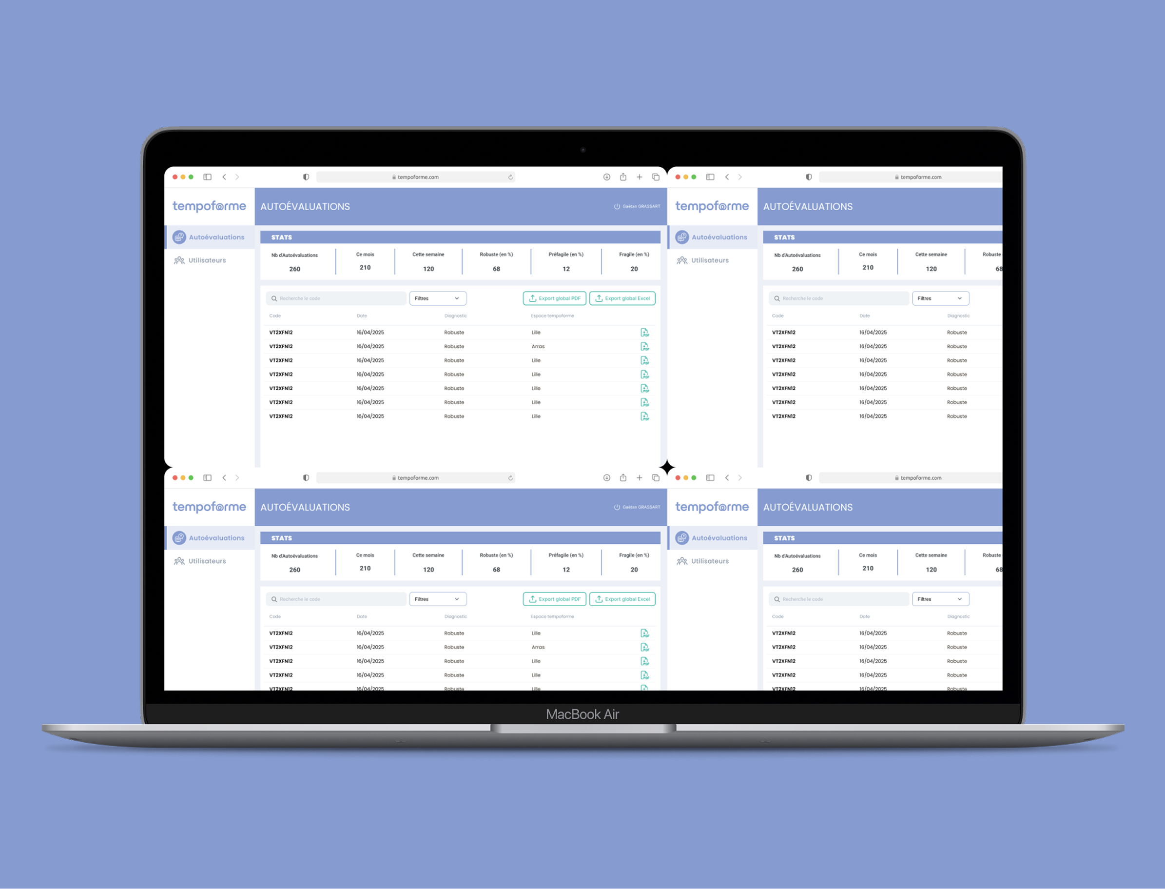 Les données anonymisées sont centralisées, filtrables et exportables, facilitant la pilotage de l’étape suivante du programme, ainsi que l’exploitation des statistiques.